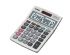 Calcolatrice da tavolo 8 cifre. Funzioni di calcolo: cambio segno, radice quadrata e percentuale. Alimentazione a energia solare e batteria. Dimensioni cm 6,5x10,6x1. Copertura in plastica.