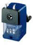 Macchinetta temperamatite a manovella, da tavolo, per tutti i tipi di matite fino al diametro di mm 12, completa di morsetto. Struttura in plastica antiurto.