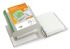 Raccoglitore a 4 anelli in Colpan (cartone rivestito in PVC) con tasca interna. Dotato di tasca trasparente frontale e dorsale per la personalizzazione.