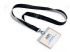 Portanome tasca chiusa con cordoncino in tessuto nero da 20 mm dotato di clip di sicurezza anti soffocamento e moschettone in metallo che una volta agganciato evita la fuoriuscita accidentale dell’inserto in cartoncino, certificato PEFC. Quest’ultimo è personalizzabile tramite il software gratuito on-line DURAPRINT®. Formato inserto: 60 x 90 mm (HxL). Lunghezza cordoncino: 44 cm. Possibilità di richiedere la personalizzazione del cordoncino con logo e/o slogan aziendale.