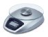 Con piatto pesata in vetro antiurto, tasto con funzione di azzeramento tara. Funziona con 3 batterie ministilo, tipo AAA da 1,5V. Dimensioni mm188x247x56, peso g 635. Pesata kg 5 con suddivisione g 5.
